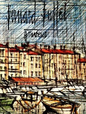1952 - Bernard Buffet illustre "Les Chants de Maldoror" de Lautréamont, les années suivantes, l'artiste consacrera beaucoup de temps à la réalisation d'estampes, lithographies ou gravures, y compris dans le domaine du livre illustré : "Recherche de la Pureté" de Giono en 1953, "La Voix Humaine" de Cocteau en 1957, "Les Voyages Fantastiques" de Cyrano de Bergerac en 1958, "Jeux de Dames" avec des poèmes de Baudelaire et Rimbaud en 1970 etc.